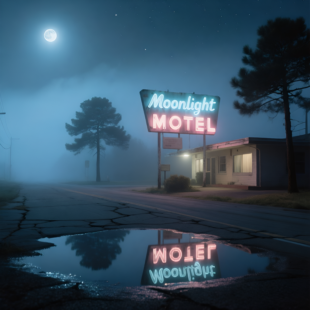 The vacancy sign flickered once, twice—then steadied in a low red hum that pulsed through the fog like a heartbeat. Lila sat in her car, hands gripping the wheel, the world outside reduced to silver and shadow. Somewhere behind the office window, a bell jingled, though no one stood there. She could smell the sea even this far inland, sharp and cold as memory. When she finally stepped out, her reflection shimmered faintly in the glass, but the face looking back wasn’t quite her own. The motel breathed, soft and slow, as if it had been waiting for her.