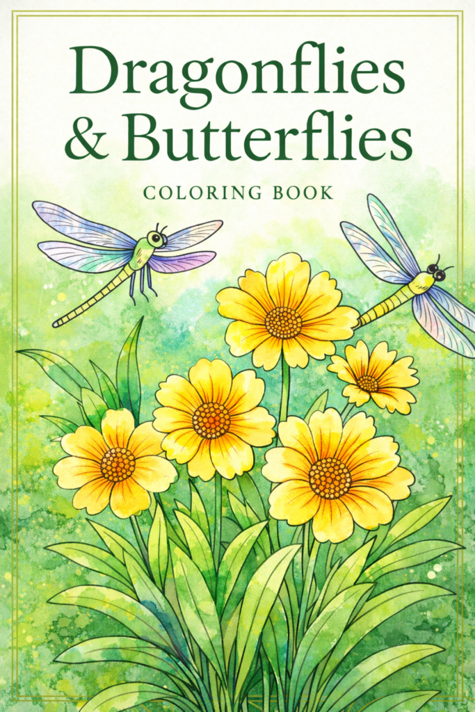 The Butterflies and Dragonflies Coloring Book is a beautifully designed 8.5 x 8.5 square coloring book featuring delicate butterflies, graceful dragonflies, blooming flowers, garden scenes, and tranquil natural settings. Each page invites you to slow down, breathe deeply, and enjoy the simple beauty of nature.