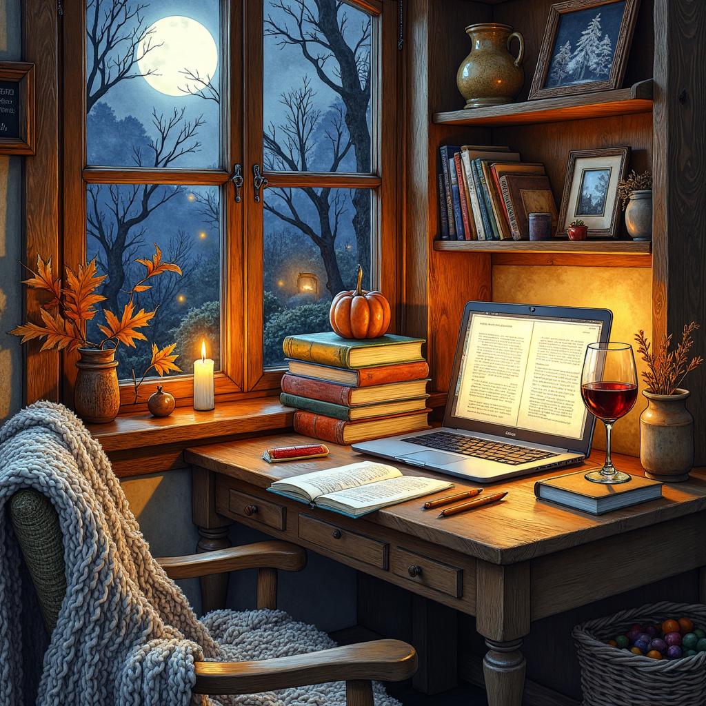 Writing Blood and Whisky in the Sunroom The soft crackle of the fireplace blends with the rhythmic tapping of my keyboard….
